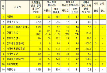 '하자 판정' 불명예 건설사는?… 한화, 6개월간 97건 최다, 5년 누적 1위는 GS건설