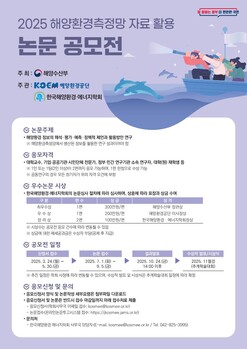해양수산부와 해양환경공단이 '제4회 해양환경측정망 자료 활용 논문 공모전'을 개최한다고 23일 밝혔다. 해양환경측정망에서 생산된 정보의 다양한 해석 및 활용 아이디어를 발굴하겠다는 취지다. 해수부는 해양환경(해수, 해저퇴적물, 해양생물)의 현황과 변화를 정기적