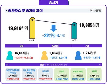 건설업을 필두로 한 경기둔화가 지속되는 가운데 지난달 국내 사업체 종사자 수가 46개월만에 감소했다. 일각에선 사업체 종사자 수 감소가 경제위기의 신호탄이 될 수 있다는 우려가 나오고 있다.27일 고용노동부가 발표한 2024년 12월 사업체노동력조사 결과에 따르면 1월