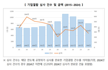 작년 기업결합 심사, 798건으로 3년 연속 감소 … "면제 대상 확대 영향"