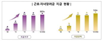국세청이 역대 최다인 507만가구에 역시 최대 규모인 5조6000억원의 근로·자녀장려금을 지급한 것으로 나타났다.국세청은 2023년 귀속 근로·자녀장려금이 현재까지 507만가구에 5조6000억원을 지급했다고 23일 밝혔다. 장려세제 도입 후 역대 최다가구에 최대금액이다