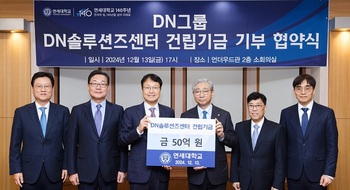 연세대학교는 DN그룹과 ㈜DN솔루션즈로부터 총 50억 원의 기부금을 받아 첨단 제조 연구와 교육을 위한 공간 'DN솔루션즈센터(가칭)'를 건립한다고 16일 밝혔다.협약식은 지난 13일 서울 서대문구 연세대 신촌캠퍼스 본관에서 윤동섭 총장과 김상헌 DN그룹 회장이 참석한