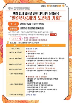 동국대학교는 11일 오후 2시 교내 원흥관 i.SPACE에서 '미래 인재 양성을 위한 다학제적 융합교육: 열린전공제의 도전과 기회'를 주제로 제8회 동국미래교육포럼을 연다고 밝혔다.이번 포럼은 학생 눈높이에 맞춰 열린전공제를 안내하고, 열린전공제 운영의 주요 과제와 실