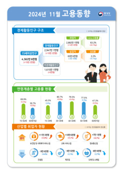 11월 취업자 수가 12만명 넘게 늘며 한 달 만에 10만명대 증가로 반등했지만, 내수 분야인 건설과 제조업, 도·소매업 일자리가 동반 감소하면서 고용 부진이 이어지는 모습이다. 11일 통계청이 발표한 '2024년 11월 고용동향'을 보면 지난달 15세 이상