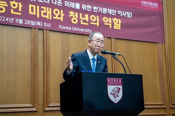 지난달 28일 고려대학교 대강당 아주홀에서 제8회 넥스트 인텔리전스 포럼(NIF)이 열렸다. 이날 '지속가능한 미래와 청년의 역할'을 주제로 특강을 한 반기문 전 유엔 사무총장은 "(한국은) 세계에서 유일하게 원조수혜국에서 공여국으로 변모한 자랑스러운 국가이자, 동시에