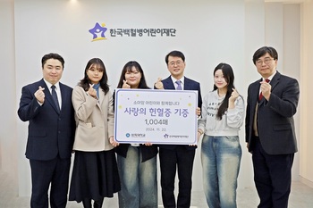 삼육대학교는 학생·교수·직원 등 학내 구성원이 함께 모은 헌혈증 1004매를 한국백혈병어린이재단에 기부하며 생명 나눔의 가치를 실천했다고 28일 밝혔다.삼육대는 매년 봄, 가을 '사랑나눔축제'를 열고 헌혈을 통한 생명 나눔 문화를 확산하고 있다. 이번 헌혈증도 축제 기