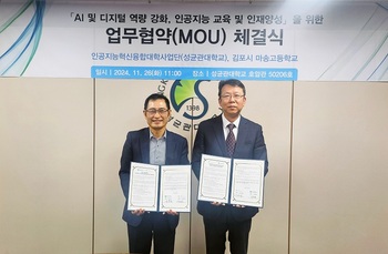 성균관대학교 인공지능혁신융합대학사업단은 지난 26일 교내 호암관 2층 50206호에서 경기 김포시 마송고등학교와 인공지능(AI)·디지털 역량 강화를 위한 업무협약(MOU)을 맺었다고 27일 밝혔다.두 기관은 이번 협약을 통해 ▲AI 인재 양성을 위한 상호 협력 ▲AI