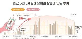 "환불·연장 안 돼요?" … 10兆 시장 '모바일 상품권', 5년여간 불만 민원도 3배 증가