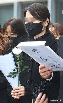 웹툰 작가 주호민씨의 아들을 정서적으로 학대한 혐의로 1심에서 유죄 판결을 받은 특수교사 A씨가 6일 법원에 항소장을 제출하며 입장을 밝혔다.A씨와 특수교사노조 소속 교사 60여 명은 이날 수원지방법원에서 검은 옷에 흰 국화꽃을 들고 기자회견을 열었다. 이들은