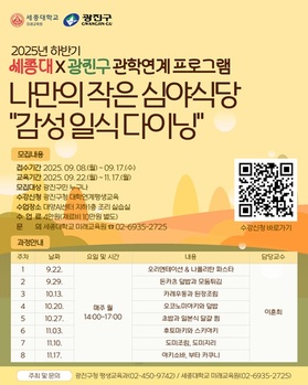 세종대학교 미래교육원은 서울 광진구청 평생교육과와 협력해 지난 22일부터 지역주민을 위한 '2025년 하반기 광진구 관·학 연계 프로그램'을 운영한다고 23일 밝혔다.이번 학기에 개설된 과정은 '나만의 작은 심야식당– 감성 일식 다이닝'이다. 일본의 다양한 요리 기법과