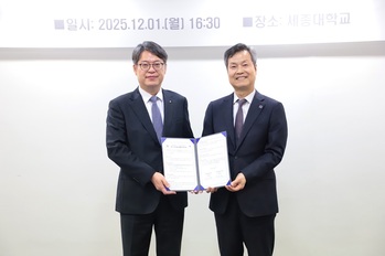 세종대학교와 서울시립대학교는 지난 1일 세종대 집현관 10층 소회의실에서 국방·무기 분야의 공동연구와 연구 교류 확대를 위한 협약(MOU)을 맺었다고 5일 밝혔다.행사에는 세종대 엄종화 총장, 송형규 교학·연구부총장, 이기학 기획처장, 권현한 연구산학협력처장, 이충훈