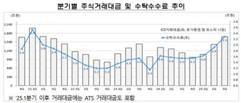 국내 증권사가 지난 3분기 2조2775억원의 수탁수수료를 벌어들였다. 증시 활황으로 주식 거래대금이 크게 늘면서 4년여 만에 분기 기준 2조원을 넘어선 것이다.금융감독원이 3일 발표한 ‘2025년 3분기 증권사 영업실적(잠정)’을 보면, 국내 증권사 60곳은 3분기 수