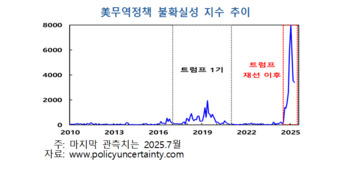 미국의 통상정책을 둘러싼 불확실성이 한국 경제의 성장 잠재력을 잠식할 수 있다는 경고가 나왔다. 특히 트럼프 2기 행정부 출범 이후 강화된 '美무역정책 불확실성'이 우리 성장률을 2025년 0.13%포인트(p), 2026년에는 0.16%포인트(p) 끌어내릴 수 있다는