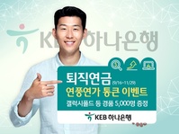 KEB하나은행이 가을을 맞아 개인형 IRP와 확정기여형(DC) 퇴직연금 신규 가입 고객에게 푸짐한 경품을 쏜다.KEB하나은행은 16일부터 오는 11월 29일까지 '연풍연가(연금을 풍요롭게, 연금을 가치있게) 통큰 이벤트'를 진행한다고 밝혔다.이번 이벤트는 추첨을 통해