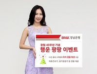 BNK경남은행은 창립 49주년을 기념해 오는 22일부터 한 달간 '창립 49주년 기념 행운 팡팡 이벤트'를 진행한다. 이번 이벤트는 전국 영업점에서 적립식 또는 거치식 수신상품에 신규 가입하거나 30년 이상 장기 거래한 고객(총수신 평잔 30만원 이상)에게 즉