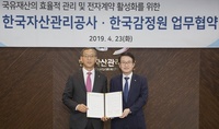 캠코(한국자산관리공사)는 23일 한국감정원과 '국유재산의 효율적 관리 및 전자계약 활성화를 위한 업무협약'을 체결했다. 이번 협약은 기획재정부 소관 국유일반재산 관리 혁신의 일환으로 시행중인 '국유재산 부동산 전자계약 서비스'를 확대해 종이 없는(페