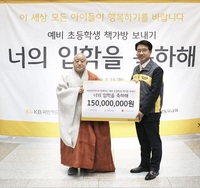 KB국민카드는 지난 19일 한국불교역사문화념관에서 ‘예비 초등학생 책가방 보내기’ 행사를 가졌다고 20일 밝혔다. 이날 행사에는 이동철 KB국민카드 사장 등 KB국민카드 임직원 70여 명과 재단법인‘아름다운 동행’의 이사장인 원행 스님(대한불교조계종 총무원장)