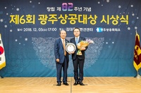 송종욱 광주은행장이 지역경제 활성화를 위해 노력한 공을 인정 받았다.광주은행은 '제6회 광주상공대상 시상식'에서 경영우수부문 대상을 수상했다고 6일 밝혔다.송종욱 은행장은 취임 이후 광주은행을 영업자산 40조원 규모의 광주·전남 대표은행으로 만들었으며, 중소기업 경영