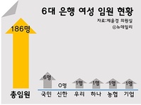 인사 시즌을 앞둔 은행권의 여성 임원 비중이 여전히 극소수인 것으로 나타났다.그동안 여성 인력 역할을 확대한다고 공헌했지만 지난 5년간 개선 의지는 보이지 않았다.더불어민주당 제윤경 의원실에서 제공한 자료에 따르면 국민, 신한, 우리, KEB하나, 농협, 기업 등 6대