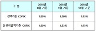 은행권 변동금리 주택담보대출의 기준이 되는 코픽스(COFIX·자금조달비용지수)가 잔액 기준으로 14개월째 상승세를 보였다.은행연합회는 10월 코픽스가 잔액 기준 1.93%로 전월 대비 0.03%포인트 상승했고, 신규취급액 기준은 1.93%로 전월보다 0.1%포인트 하락