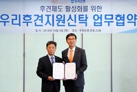 우리은행이 금융소외계층과 후견심판을 받은 피후견인들이 안정적인 생활을 할 수 있도록 지원한다.우리은행은 법무법인 '광장'과 후견제도 활성화를 위한 '우리후견지원신탁 업무협약'을 체결했다고 5일 밝혔다. 이번 협약에 따라 신탁 상품과 법률 서비스로 후견제도 활성