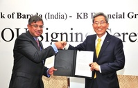 윤종규 KB금융지주 회장이 디지털 기반의 글로벌 금융 비즈니스 확대로 인도 시장 진출에 시동을 걸었다.KB금융지주는 인도 국영은행인 바로다 은행(Bank of Baroda) Shri P.S Jayakumar 은행장과 포괄적 협력을 위한 업무협약을 체결했다고 10일 밝혔