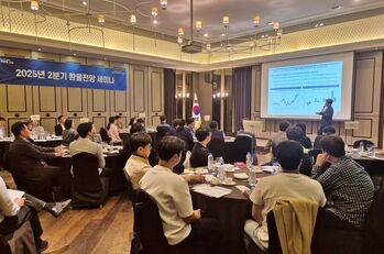 우리은행은 지난 14일 경남지역 수출입기업 임직원을 초청해 ‘2025년 2분기 환율전망 세미나’를 개최했다고 16일 밝혔다. 이번 세미나에서 우리은행 대표 외환전문가인 민경원 선임연구원을 비롯한 외환·파생 실무를 담당하는 직원이 강사로 나서 외환시장 주요 이슈