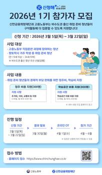 신신한금융희망재단은 5일부터 22일까지 경제적 여건이 어려운 취업준비 청년들을 지원하는 '신한이 청년을 응원해' 사업의 1차 지원자를 모집한다고 밝혔다. 신한이 청년을 응원해는 경제적 여건이 어려운 비수도권 출신 청년들에게 수도권 내 주거비, 교통비 등의 생활