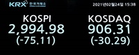 코스피, 2%대 급락 2994.98 마감…한달만에 3000선 붕괴