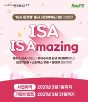한국투자증권은 개인종합자산관리계좌(ISA) 중개형 출시를 앞두고 뱅키스(BanKIS) 고객을 대상으로 사전예약 이벤트와 가입 이벤트를 실시한다고 25일 밝혔다. 올해부터 절세형 만능통장으로 불리는 ISA에 대한 혜택이 확대된다. 만 19세 이상이면 누구나 가입