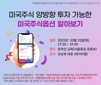 키움증권은 오는 31일 오후 5시 30분부터 90분간 '미국주식 양방향 투자 가능한 미국주식옵션 알아보기'를 주제로 세미나를 개최한다고 25일 밝혔다.세미나 1강에서는 강승희 테이바랩 대표가 주식과 주식옵션의 차이점 및 미국주식옵션 거래 제도에 대해 설명한다.