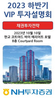 NH투자증권은 오는 10일 오후 3시 경기도 판교 코트야드바이메리어트호텔에서 경기권역 VIP고객을 대상으로 ‘채권 투자 전략’ 설명회를 개최한다고 6일 밝혔다. VIP 투자설명회 주제는 ‘자산 배분 및 투자를 위한 국내외 채권투자전략’으로 경기권역