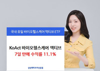 삼성액티브자산운용은 KoAct 바이오헬스케어액티브 ETF가 상장 후 7영업일 만에 11% 수익률을 초과했다고 14일 밝혔다. AI 시대 기술융합을 통해 고성장이 기대되는 바이오헬스케어 기업에 투자하는 국내 유일한 액티브 ETF로 iSelect 바이오헬스케어 P