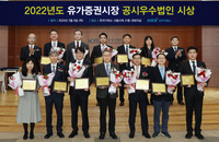 한국거래소는 9일 서울 사옥에서 2022년도 유가증권시장 공시우수법인·공시우수위원을 선정·시상했다고 밝혔다.선정된 공시우수법인 8사는 ▲엔에이치엔 ▲코오롱글로벌 ▲종근당 ▲한화생명보험 ▲롯데케미칼 ▲현대중공업 ▲현대제철 ▲롯데칠성음료다. 영문공시 우수법인에는