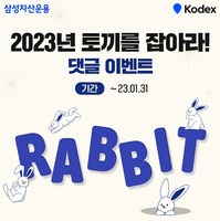 삼성자산운용은 새해를 맞아 ‘2023년 토끼를 잡아라’ 댓글 이벤트를 오는 31일까지 실시한다고 25일 밝혔다. 이번 이벤트는 KODEX 유튜브 채널에 업로드된 ‘ETF 테마노트-RABBIT’ 소개 영상을 보고, 6개 투자 키워드 중 가장 관심 있는