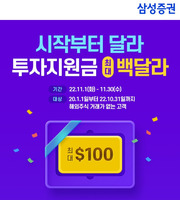 삼성증권은 신규 고객과 지난 2020년부터 삼성증권에서 해외주식 거래 경험이 없었던 고객을 대상으로 최대 100달러를 지원하는 이벤트를 이달 말까지 진행한다고 11일 밝혔다. 우선적으로 대상 고객들에게 투자지원금 20달러를 지급하고, 이후 온라인 해외주식 거래금액에 따