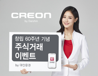 대신증권은 온라인 거래매체 크레온 이용고객을 대상으로 2억5000만원 규모의 경품을 제공하는 '창립 60주년 기념 주식거래 이벤트'를 개최한다고 14일 밝혔다.미국주식과 국내주식을 각각 100만원 이상 거래하고 크레온 모바일트레이딩시스템(MTS), 홈트레이딩시스템(HT