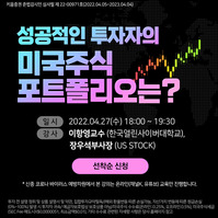 키움증권은 오는 27일 오후 6시부터 90분간 미국주식 투자 반상회 세미나를 개최한다고 26일 밝혔다. 세미나 강사는 한국열린사이버대학교 이항영 교수와 US STOCK의 장우석 부사장이 맡는다. 강의 주제는 미국 주식을 성공적으로 투자하기 위한 포트폴리오 구성