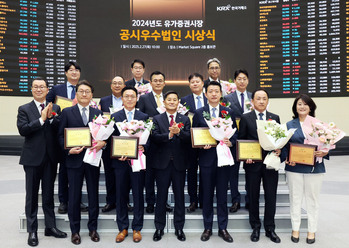 한국거래소는 서울 여의도 사옥에서 ‘2024년도 유가증권시장 공시 우수법인·공시 우수위원’을 선정하고 시상했다고 27일 밝혔다.거래소는 지난해 공시실적 등을 기초로 1차 정량평가, 2차 정성평가를 통해 공시 우수법인 8사와 영문공시 우수법인 3사를 선정했다. 또한 공시