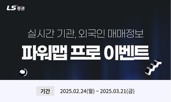 LS증권은 '파워맵 프로' 가입 이벤트를 실시한다고 25일 밝혔다.파워맵 프로는 외국인과 기관의 종목별 매매정보 추정치를 실시간으로 제공하는 프리미엄 서비스다. LS증권은 오전 9시부터 오후 3시20분까지 외국인과 기관의 종목별 수급 현황, 수급이 몰리는 테마 업종 등