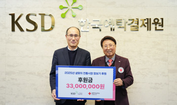 한국예탁결제원 KSD나눔재단은 지난 10일 부산 본사에서 대한적십자사 부산광역시지사에 설맞이 전통시장 장보기 행사 후원금 3300만원을 전달했다고 13일 밝혔다. 금번 후원은 부산지역 홀몸어르신, 조손가정 등 사회적 배려계층 220가구에게 설맞이 장보기 비용을