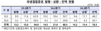 올해 3분기 파생결합증권인 주가연계증권(ELS)·파생연계증권(DLS)의 총발행 잔액이 78조3000억 원으로 전년 대비 17% 가까이 줄어든 것으로 나타났다. 30일 금융감독원이 발표한 '2024년 3분기 중 증권회사 파생결합증권 발행·운용 현황'에 따르면 올