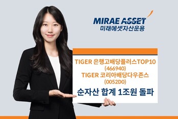 미래에셋자산운용은 국내 주식형 고배당 상품인 ‘TIGER 은행고배당플러스TOP10 ETF’와 ‘TIGER 코리아배당다우존스 ETF’ 2종의 순자산 합계가 1조원을 돌파했다고 4일 밝혔다.한국거래소에 따르면 3일 종가 기준 ‘TIGER 은행고배당플러스TOP10 ETF’