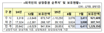 외국인 투자자가 국내 주식을 세 달 연속 순매수, 채권은 6개월 연속 순투자를 지속 중인 것으로 나타났다.7일 금융감독원이 발표한 '2025년 7월 외국인 증권투자 동향'에 따르면 외국인은 지난달 국내 상장주식 3조4110억원을 순매수했다. 외국인 투자자는 지난 5월