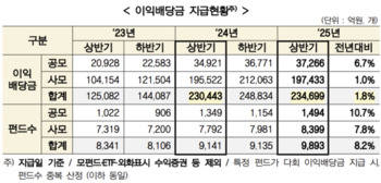 한국예탁결제원은 올해 상반기 펀드 이익배당금 지급액이 23조4699억원으로 전년 동기 대비 1.8% 증가했다고 25일 밝혔다.공모펀드의 이익배당금은 3조7266억원으로 지난해 같은 기간보다 6.7% 늘었고 사모펀드 이익배당금도 1.0% 증가한 19조7433억원으로 집계
