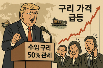 미국이 다음달 1일부터 수입 구리에 50% 관세를 부과하겠다는 방침을 밝히자 구리 가격이 들썩이고 있다. 관세 발효 전 미리 재고를 확보하려는 수요가 늘어나면서다. 이에 단기적으로 구리를 비롯한 구리 관련 기업들의 주가에도 영향을 미칠 수 있다는 분석이 나온다.도널드