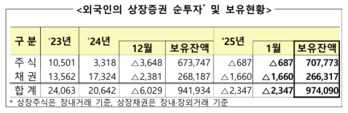 외국인 투자자들이 지난달에도 국내 증시에서 약 7000억 원 팔아치우며 6개월 연속 순매도를 기록했다. 채권도 2개월 연속 순회수가 지속된 것으로 나타났다.14일 금융감독원이 발표한 '2025년 1월 외국인 증권투자 동향'에 따르면 외국인은 지난달 유가증권시장에서 27