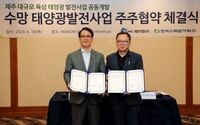 한국수력원자력(사장 정재훈)이 제주특별자치도 60㎿ 규모의 태양광발전사업에 공동사업자로 참여한다.한수원은 18일 메종글래드 제주호텔에서 ㈜제이원과 주주협약 체결식을 가졌다. 이날 협약식에는 한수원 이인식 그린에너지본부장, 배양호 신재생사업처장을 비롯해 제이원