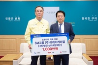 SM그룹 제조 부문 계열사인 티케이케미칼이 남선알미늄, 벡셀과 함께 구미시청을 방문해 '코로나19 극복 성금' 1000만원을 전달했다.19일 SM그룹에 따르면 이번에 기부된 성금은 신종 코로나바이러스 감염증(코로나19) 확산으로 큰 어려움을 겪고 있는 구미 지역 내 독