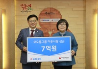 코오롱그룹이 서울 사회복지공동모금회에 ‘희망나눔 성금’ 7억원을 기부했다. 코오롱은 2008년부터 매년 사회복지공동모금회에 성금을 기부해오고 있다.8일 서울 중구 사랑의열매 회관에서 열린 성금 전달식에는 김승일 부사장(코오롱CSR사무국장), 김연순 사회복지공동모금회 사